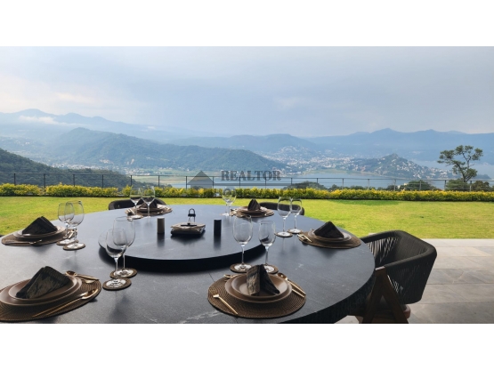 La propiedad cuenta con cinco recamaras con vistas panorámicas al lago de Valle de Bravo, cinco baños completos, ½ baño, estudio, comedor, cocina, sala, en la parte exterior de la propiedad encontraremos un jardín con una vista espectacular en conjunto de un jacuzzi y alberca con camastros creando un ambiente ideal para descansar y pasar las tardes en familia acompañado de un comedor, terraza y asador ideal para tus reuniones familiares, la casa cuenta con tres espacios para estacionamiento.
